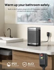 Space Heater Upgraded for Bathroom Indoor Portable 1500W Ceramic Electric Heater Space Heater Series—America's Home & Garden Best Brands of 2022 Portable Oscillating Ceramic Space Heater with ALCI Safety Plug,Made for Bathroom, Design for All Rooms Safer for Bathrooms Most space heaters don't work in bathrooms due to safety concerns and using heaters in bathrooms would also reduce product lifespan. However, Dreo ALCI safety plug that shuts off the small heater immediately in case of a short and contact with water, keeps you warm and safe in the bathroom during colder days. Made with V-0 rated flame-retardant materials, this portable heater has tip-over and overheat protection, 24h auto shut off provides the ultimate safety wherever it sits. Heating Coverage:95 degree Fahrenheit. Cut the Wait Thanks to extremely high thermal efficiency, Dreo 1500W PTC ceramics hit 75℉ in just 2 seconds, along with a powerful yet quiet brushless DC motor, you're to embrace all-around, pleasant warmth in a blink of an eye. Heat Any Way You Like Adjust temperatures from 41 to 95℉ in 1℉ increments, set a timer (1-12h), 70°oscillation and personalize your comfort at the touch of a button. Carry this 10.3-inch portable heater to your bathroom, living room, kitchen, bedroom, etc. and heat any way you like. Convenience at All Times This heater fan has 5 energy-efficient modes( H1-900W, H2-1000W, H3-1500W, Eco and Fan Only) to suit your varying needs. It boasts a detachable and easy to clean filter to be sure that you will always breath a clean air. Always Quiet, Always Saving Enjoy all the peace at night with Dreo's unique airflow structure that minimizes the noise down to 40 dB. And ECO mode self-adjusts the heating level to keep you in constant comfort while saving more on your energy bills. " Portable Electric Heater Key Features: Adjustable Thermostat from 41 to 95°F 70° Wide Oscillation 5 Modes LED Digital Display Remote Control & Touch Control Tip-over Protection Detachable Filter Safe ALCI Plug (For Bathroom Use) IP21 Waterproof 1-12H Timer Portable-Small Size Easy Carry Handle ETL-Listed 10.3 inches x 6.7 inches x 5.5 inches. Weight: 3.8 lb Features Easy to Clean Power Type Electric Recommended Location Indoor Watts 1500 Watts Recommended Use Indoor Maximum Room Size 200 sq ft Assembled Product Weight 3.8 lbs Color Black Assembled Product Dimensions (L x W x H) 6.70 x 5.50 x 10.30 Inches
