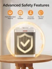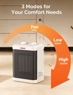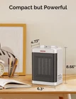 Space Heater for Indoor Use, 1500W PTC Ceramic with Thermostat, WHITE Product Details Brand: Oprunsy Special Feature: Portable, Adjustable Temperature, Tip-Over Protection Color: WHITE Form Factor: Pedestal Indoor/Outdoor Usage: Indoor Product Dimensions: 6.3"D x 4.73"W x 8.66"H Recommended Uses For Product: Office, Home Mounting Type: Floor Mount Room Type: Bedroom, Home Office, Study Room Heating Coverage: [EST] Suitable for small rooms Burner type: Radiant Heat Output: 1500 Watts Fuel Type: Electric Number of Speeds: 3 Voltage: 120 Volts Item Weight: 2.7 pounds Manufacturer: Oprunsy Item model number: PTC-SH002 Assembly required: No Batteries required: No Included Components: space heater Power SourceHeating Method: acConvection MULTI-HEATING MODES: 3 desired comfort settings, High Heat (1500 watts), Low Heat (900 watts), and Natural Wind, make this electric space heater perfect for warming up your home or home office area. Adjustable temperature settings help to quickly increase the temperature based on the thermostat control. DEFEAT COLD IN 2S: Ceramic space heaters are a great way to save floor space while beating the cold. Our advanced PTC ceramic heating element adopts quick heat technology to achieve rapid heating within 2 seconds. Dual wattage 900/1500W heat provides you with constant comfort. RELIABLE SAFETY PERFORMANCE: Our space heaters have built-in safety overheating and tip-over protection, the electric heater will auto turn off if accidentally tipped over or overheated cannot be controlled or surveilled, and will not harm children and pets. The power indicator light lets you know when it's plugged in. SAFE AND HASSLE-FREE: This tabletop heater features safety features to protect against tip-over and overheating. Made of premium-quality flame retardant material to avoid fire accidents. And certificated by Electrical Testing Laboratories (ETL) USA & Canada. Wraps you in toasty quiet heat all night long.The heating device provides users with a safer and more comfortable operating experience. COMPACT SPACE SAVINGS: Dimensions are 6.3" long, 4.73" wide, 8.66" high, and weigh 2.43 lbs. Small indoor electric heaters with two heating modes are an excellent design for homes, dorms, studios, and offices. Adopt the convection heating method to create a comfortable environment.
