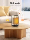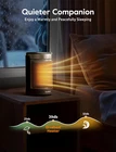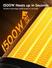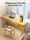 1500W HEATS UP IN SECONDS: With PTC ceramic heating technology and high speed fan, this room heater delivers 1500W power for quick and comfortable warmth. It heats up quickly to reach your desired temperature instantly. It can quickly heat up an area of 200 square feet. This electric heater is meant to sit by your feet on the floor, near your hands on a desk, or carry around indoors MULTIPLE SAFETY FEATURE: These space heater indoor are made of flame retardant material avoiding any fire hazard. Automatic safety shut-off system will shut off the mini heater when the it overheat. The tip over protection system will also shut off the heater when the heater was knocked over by accident SAVE MORE ON ENERGY BILLS: ECO mode automatically adjusts the electric heater's heating level to achieve your desired temperature while saving more on your electricity bill. Personalize your own comfort with the digital thermostat from 41 to 95 ℉, adjustable in 1℉ increments. Precise Heat, Precise Comfort 80°OSCILLATION WARM ANY ANGLE: Experience the heat that envelopes you in the widest way possible. 80° wide-angle oscillation sweeps around to cover the whole area, providing wide-reaching heat for your bedroom, garage, basement, office, desktop, etc HEAT THE WAY YOU LIKE: This portable heater comes with multiple heating levels and modes to heat the way you want it (High/Medium/Low/ECO/Fan Only). It also has convenient extras for a hassle-free experience (12-hour timer, child lock and remote control) Product Description