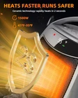 1500W HEATS UP IN SECONDS: With PTC ceramic heating technology and high speed fan, this room heater delivers 1500W power for quick and comfortable warmth. It heats up quickly to reach your desired temperature instantly. It operates at up to 1500W and can quickly heat up an area of 200 square feet COMPACT SIZE, GIGANTIC WARMTH: The compact design allows placement by your feet on the floor, beside your hands on the office desk, or for carrying around indoors. This powerful ceramic heater with up to 1500w can offer gigantic warmth for your bedroom, garage, basement, office, desk, and more SMART THERMOSTAT ECO MODE: ECO mode automatically adjusts the electric heater's heating level to achieve your desired temperature while saving more on your electricity bill. Personalize your own comfort with the digital thermostat from 41 to 95 ℉, adjustable in 1℉ increments. Precise Heat, Precise Comfort MULTI-PROTECTION SAFETY FEATURE: These space heater indoor are made of flame retardant material avoiding any fire hazard. Automatic safety shut-off system will shut off the mini heater when the it overheat. The tip over protection system will also shut off the heater when the heater was knocked over by accident MULTIPLE MODES OF OPERATION: This portable heater comes with multiple heating levels and modes to heat the way you want it (powerful heat, ECO, fan only). It also has convenient extras for a hassle-free experience (12-hour timer, child lock and remote control) Product Description 1 GiveBest Make Difference 2 Fast Heating 3 ECO MODE