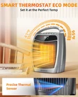 1500W HEATS UP IN SECONDS: With PTC ceramic heating technology and high speed fan, this room heater delivers 1500W power for quick and comfortable warmth. It heats up quickly to reach your desired temperature instantly. It operates at up to 1500W and can quickly heat up an area of 200 square feet COMPACT SIZE, GIGANTIC WARMTH: The compact design allows placement by your feet on the floor, beside your hands on the office desk, or for carrying around indoors. This powerful ceramic heater with up to 1500w can offer gigantic warmth for your bedroom, garage, basement, office, desk, and more SMART THERMOSTAT ECO MODE: ECO mode automatically adjusts the electric heater's heating level to achieve your desired temperature while saving more on your electricity bill. Personalize your own comfort with the digital thermostat from 41 to 95 ℉, adjustable in 1℉ increments. Precise Heat, Precise Comfort MULTI-PROTECTION SAFETY FEATURE: These space heater indoor are made of flame retardant material avoiding any fire hazard. Automatic safety shut-off system will shut off the mini heater when the it overheat. The tip over protection system will also shut off the heater when the heater was knocked over by accident MULTIPLE MODES OF OPERATION: This portable heater comes with multiple heating levels and modes to heat the way you want it (powerful heat, ECO, fan only). It also has convenient extras for a hassle-free experience (12-hour timer, child lock and remote control) Product Description 1 GiveBest Make Difference 2 Fast Heating 3 ECO MODE