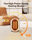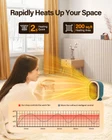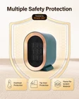 【ENERGY EFFICIENT】Our mini space heats up quickly in 3 seconds, and has 2 different heating settings (low 800W and high 1200W) thermostatic output for you to adjust, making it an efficient way to enjoy a warm and comfortable room without hurting your wallet. 【TIPPING PROTECTION】With an elastic device at the bottom, our space heater for indoors can automatically shut off the power when tilted 45° (it can only produce heat for you when it is standing steadily), so there is no need to worry about your pets or children accidentally knocking over the heater. Families with kids or pets will appreciate this feature that helps prevent accidents and fires. 【MULTIPLE PROTECTION】- Our PTC ceramic space heater fan is made of enhanced ABS flame retardant material, and the heat-resistant air vents prevent your hands from getting burned. OVERHEAT PROTECTION ensures that the space heater will not overheat even if left on for a long periods of time. So there is no need to worry about leaving it on all night while you sleep. A clear indicator light keeps you informed of the heater's operating status. 【PORTABLE AND PRACTICAL】This portable space heater is lightweight and compact, with a HIDDEN HANDLE for easy carrying. At the same time, our heater extends the cord to 1.5 meters, expanding your use range and suitable for use anywhere: bedroom, office, dorm or studio, etc. You can even place it under desk to keep your legs and feet warm. 【QUIET AND COZY】Featuring a high-quality motor that emits less than 38 decibels of noise, this room heater creates a warm and cozy atmosphere without disturbing your work or sleep. Perfect for cold winter days, it ensures you stay warm without any interruption.