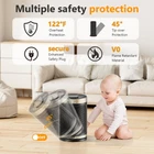 Fast and Uniform Indoor Heating: ceramic heater adopts advanced PTC ceramic heating technology and a high-efficiency fan to provide fast heating in 2S. The 70° wide-angle oscillation, boosts heating coverage by 20%, which helps distribute the warm air more evenly towards the room's corners, suitable for warming up spaces in the home including bedrooms, basements, garages, living rooms, and can also be used in offices, dorms, hot yoga studios, etc Multiple Safety Protections: This room heater has multiple safety features, including anti tipping protection, overheating protection, 24-hour no interaction, automatic shutdown, safety plug, and V-0 flame retardant, and it has passed ETL certification. It will shut off automatically when it is overheated or tipped over accidentally. It is made of high-quality V-0 flame-retardant ABS material, which is suitable for families with children and pets, allowing you to spend a safer and warmer winter. Smart Control and Low Noise: One touch to change the temperature and mode on the LED digital display, or use the remote control to adjust the heater's temperature, timer, and more from a distance. While the adjustable timer allows you to select 1 to 12 hours. This heater fan adopts a brushless DC motor that runs quietly and smoothly, as quiet as 35 dB, allowing you to sleep or work with peace of mind. Save More on Energy Bills: Equipped with 900W low-temperature mode and 1500 high-power heating mode, energy-saving heater with built-in intelligent temperature sensor, ECO Mode adjusts the heat level automatically to reach your desired temperature while saving more on energy bills. Personalize your own comfort with the digital thermostat from 41 to 95 ℉, adjustable in 1℉ increments. Precise Heat, Precise Comfort. The built-in handle on the back of this indoor space heater makes it easy to carry and store, allowing you to easily move it from the bedroom to the living room, kitchen, office, dormitory, garage, basement, and other places you want to use.