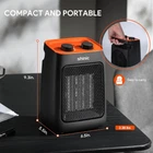 3 Modes and Thermostat:This space heater is deigned with two heat settings, High--1500W and Low--750W, along with a cooling fan function, meeting your needs in different seasons. The small heater is also equipped with adjustable thermostat, which can automatically maintain a constant temperature you set in advance. Efficient Heating:The portable heater uses energy-efficient PTC ceramic heating technology and high-speed fan to improve heating efficiency while saving electricity bills. It can warm a 200 square feet quickly within seconds, perfect for desk, bedroom, office, dorm, sitting room and other small space. Multiple Safety Protection:The room heater is ETL listed and constructed from flame-resistant materials.built in tip-over protection and overheat protection system, which will automatically shut down when it tilts or overheats and ensure the safety of your family. Compact and Portable:The mini heater for indoor use measures 6.5 x 5.5 x 9.3 inches and weighs just 2.38 pounds. With a built in carrying handle and 6-foot UL rated power cord, you can easily use it where you need. Quiet and Comfortable:The PTC heater body structure has been tested hundreds of times and noise level below 42dB, you can enjoy quiet and warm night sleep in the cold winter. When you need to work or relax quietly, it also won't cause any trouble for you. After Sales:We offer 1 year warranty service, If you have any questions after receiving the heater, please contact us immediately, We will reply within 12 hours.