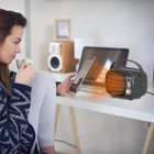 【SAFETY FEATURES】 Overheat protection ensures the desk space heater does not overheat even if left on for an extended amount of time.It will turn off automatically if the device accidentally tips over or reaches a high temperature of 176 ℉ to effectively avoiding burning or fire or any other safety accident 【ADJUSTABLE POWER】The small space heater with an adjustable temperature control,you can choose the comfortable temperature as you need 【CERAMIC SPACE HEARER】 Advanced PTC ceramic heating elements provide faster and more efficient heating than traditional heaters.Small desk heater can rapid heating within 3s.Small and powerful this is the perfect heater for home,bedroom,office and under desk use 【MATERIAL】 desk heater is made of ABS material,which is HIGH TEMPERATURE RESISTANT FLAME RETARDANT MATERIAL.It won’t overheat even if left on for an extended amount of time 【COMPACT and POWERFUL】 7.4 inch x 4.2 inch x 5 inch, 1.45 pounds portable heater with carry handle you can carry it with you easily in anywhere.Small but powerful,makes you warm up in cold Winter