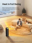 ETL-Certified Safety: Made of V0 flame-retardant materials with multiple safety features including built-in smart tip-over protection, overheat protection, 12-hour timer, 24-hour automatic power off without interaction, V0 flame retardant 2-prong plug, and sturdy 6ft long flat power cord. Safe and worry-free all-day use. Safety Reminder: Please do not use with an extension cord. Only plug directly into the wall outlet. Fast Indoor Ceramic Heater: Powerful 1500W PTC ceramic heating allows this space heater to heat up in seconds, suitable for warming up spaces in the home including bedrooms, basements, garages, living rooms, and can also be used in offices, dorms, hot yoga studios, etc. Heating Coverage:200 sq.ft. Quiet Heating: 40dB - almost as quiet as a library. The fan wheel uses oblique airflow technology, which effectively reduces wind noise and makes the room heater 12% quieter than traditional electric heaters. Calm airflow lets you sleep soundly and work undisturbed during the cold winter Uniform Heating: Experience enhanced comfort in large rooms with the exclusive trackball system, engineered for smooth and whisper-quiet oscillation. The 70° wide-angle oscillation, with a lifespan of over 750,000 cycles, boosts heating coverage by 20%, which helps distribute the warm air more evenly towards the room's corners Energy Efficiency: Save on energy bills and live more sustainably. With a built-in precise temperature sensor, the smart ECO mode adjusts the working mode independently (with a low of 900W and high of 1500W to efficiently maintain your desired indoor temperature) based on the ambient temperature Usage Comfort: The touchscreen is placed on top of the heater for easier reach, and the remote provides full access from up to 26 feet away. The 16-inch compact design makes our space heater a real space saver that is easy to move around with its hidden handle. Cord Lenth: 6 ft / 1.8 m