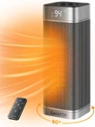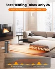 Fast Heating Takes Only 2S: With the help of a powerful 3,600 rpm/min wind speed and 1500W PTC ceramic this space heater quickly sends out hot air, you can clearly feel the change from cold to warm in 2 seconds. With 5 modes, including natural wind, ECO, and 3 modes of hot air (600w/1000w/1500w), the heating temperature range is 41℉ to 95℉ Safe and Reliable: The body of this ceramic heater is made of V0 grade flame retardant material, with multiple safety features, including overheat protection, anti-tip protection, automatic shutdown after 24 hrs no operation, reinforced plug, built-in Double fuses to prevent short circuits, ensuring you have worry-free use ECO Life: Our electric heater can realize intelligent ecological mode, through the built-in precise NTC temperature sensor, It can adjust the heating power according to the ambient temperature and the required temperature you set to help you warm and save energy with maximum efficiency Auto Oscillating & Remote Control: 60° wide oscillating helps distribute warm air more evenly to all corners of the room, quickly heating small to large rooms on cold days, perfect for offices, bedrooms, and living rooms. The multifunctional remote control can be accessed from up to 33 feet away, You can remotely turn the heater on/off, adjust the heater temperature, set a timer, turn oscillation on/off Quiet Working: This electric heater can produce heat quietly. The fan blades and motor are optimized to cut the wind more efficiently and the wind force is stronger. Coupled with the heater body structure that has been tested hundreds of times, it works more quietly. Warmth airflow allows you to sleep peacefully and work undisturbed in the cold winter, you can barely hear a sound Product Description 1 Flame Retardant Material 2 Tip-Over Protection 3 Safety Plug Easy to carry Easily and safely carry from room to room with concealed handle. 7 button controls The buttons are easy to understand and can easily be adjusted to the temperature and mode you want. Remote Control The multifunctional remote control can be accessed from up to 33 feet away. 12 Hours Timer Set the right time to match your sleeping habits so you can sleep in a warm temperature.