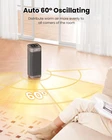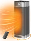 Fast Heating Takes Only 2S: With the help of a powerful 3,600 rpm/min wind speed and 1500W PTC ceramic this space heater quickly sends out hot air, you can clearly feel the change from cold to warm in 2 seconds. With 5 modes, including natural wind, ECO, and 3 modes of hot air (600w/1000w/1500w), the heating temperature range is 41℉ to 95℉ Safe and Reliable: The body of this ceramic heater is made of V0 grade flame retardant material, with multiple safety features, including overheat protection, anti-tip protection, automatic shutdown after 24 hrs no operation, reinforced plug, built-in Double fuses to prevent short circuits, ensuring you have worry-free use ECO Life: Our electric heater can realize intelligent ecological mode, through the built-in precise NTC temperature sensor, It can adjust the heating power according to the ambient temperature and the required temperature you set to help you warm and save energy with maximum efficiency Auto Oscillating & Remote Control: 60° wide oscillating helps distribute warm air more evenly to all corners of the room, quickly heating small to large rooms on cold days, perfect for offices, bedrooms, and living rooms. The multifunctional remote control can be accessed from up to 33 feet away, You can remotely turn the heater on/off, adjust the heater temperature, set a timer, turn oscillation on/off Quiet Working: This electric heater can produce heat quietly. The fan blades and motor are optimized to cut the wind more efficiently and the wind force is stronger. Coupled with the heater body structure that has been tested hundreds of times, it works more quietly. Warmth airflow allows you to sleep peacefully and work undisturbed in the cold winter, you can barely hear a sound Product Description 1 Flame Retardant Material 2 Tip-Over Protection 3 Safety Plug Easy to carry Easily and safely carry from room to room with concealed handle. 7 button controls The buttons are easy to understand and can easily be adjusted to the temperature and mode you want. Remote Control The multifunctional remote control can be accessed from up to 33 feet away. 12 Hours Timer Set the right time to match your sleeping habits so you can sleep in a warm temperature.