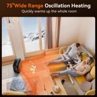 Fast & Efficient Heating for Indoor Use: Equipped with advanced PTC ceramic heating technology, space heater delivers powerful warmth in seconds. Choose between 1500W or 750W power levels to customize your heating needs—perfect for bedrooms, living rooms, or offices. User-Friendly LED Display & Remote Control: Featuring an easy-to-read LED touch screen, this heater puts precise temperature control at your fingertips. Adjust settings remotely with the included remote control for ultimate convenience. ECO Mode for Energy Savings: Keep warm while cutting energy costs! The ECO mode automatically adjusts power usage based on room temperature, maintaining consistent warmth while reducing electricity consumption—ideal for all-day indoor use. 75° Oscillating Heat Distribution: Enjoy widespread warmth with the heater’s 75° oscillation feature. Evenly heats every corner of your space, making it perfect for shared rooms or larger indoor areas. Safe for Families & Pets: Designed with tip-over protection, overheat shut-off, and flame-retardant materials, this space heater ensures maximum safety for you and your loved ones. Worry-free warmth for homes with children or pets! Quiet Operation & Portable Design: This indoor heater runs ultra-quietly, creating a peaceful environment for sleeping, working, or relaxing. Compact with a built-in handle, it’s easy to move to any room where you need extra warmth.