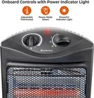 EFFICIENT QUARTZ RADIANT HEATING: Transform chilly or draughty spaces into cozy havens with the Comfort Zone Energy-Saving Radiant Quartz Heater. Utilizing the power of three horizontal radiant quartz tubes & a fan-forced system, this heater efficiently distributes warmth, ensuring even heat dispersion throughout the room. Experience the embrace of powerful radiant heat, carefully designed to banish cold spots & provide consistent comfort. As the unit gently circulates warm air, you can savor the assurance of a toasty, inviting atmosphere. ENERGY-EFFICIENCY UNLEASHED: Our heater is a beacon of innovation, offering not one, but two heat settings, and an energy-saving mode that trims the appliance's power consumption by a remarkable 30 percent. This translates to more than just cost savings; it's about combining superior heating performance with sustainability. The energy-saving mode gracefully adjusts its operation to maintain optimal warmth while reducing your power bills. Embrace a win-win solution where you can relish top-tier heating without the soaring energy costs. SAFETY FIRST HEATING: Trust in the ETL approved design of our heater for your safety. It's equipped with a robust safety suite, starting with an overheat protection system. This system acts as a vigilant guardian, ensuring the heater never reaches hazardous temperature levels. It's your assurance against any overheating mishaps. Additionally, we've incorporated a savvy safety tip-over switch. This intelligent feature acts swiftly if your heater is accidentally knocked over, instantly cutting off power. EFFORTLESS MOBILITY, ENHANCED SAFETY: This quartz radiant heater brings convenience and safety together. The heater's heat-resistant metal exterior housing isn't just about durability; it's also designed with your well-being in mind. Even as it generates comforting warmth, the exterior remains touchable, ensuring your safety. To make transportation a breeze, we've integrated a comfortable molded handle. Not only does it stay cool, but it's also designed with ergonomics in mind, preventing discomfort during use. OPTIMIZED FOR MEDIUM-SIZED SPACES: Our quartz heater is tailor-made for your comfort in medium-sized rooms and office spaces. Equipped with an adjustable electronic thermostat, it ensures that you have complete control over the warmth in your immediate surroundings. The top-mounted control knobs are a testament to our commitment to user-friendly design. These controls allow you to adjust the thermostat and heat settings swiftly and with pinpoint precision. Add warmth to a cold room with Comfort Zone's Energy Save Quartz Radiant Heater that features 3 horizontal radiant quartz tubes and an adjustable electronic thermostat to comfortably heat medium-sized rooms. Perfect for your home, office or studio, this energy-efficient electric heater features Energy Save Technology to help you minimize the power consumption by 30 percent, and reduce the electricity costs. A smart space-saving solution, this heater is fan-forced to disperse heat evenly all across the room. It is designed with safety overheat protection sensor that turns off the heater if it reaches dangerously high temperatures and a safety tip-over switch to ensure safe and easy operation. Equipped with a stay-cool body and a molded handle, the quartz radiant heater allows for easy transportation without the risk of burning your hand. Compliant and tested as per set safety standards, the Comfort Zone heaters are ETL-approved to create a safe, comfortable and warm living environment.