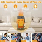 Kindly Note: Due to special reasons, both the large-sized and medium-sized ones actually have the dimensions of 6.96 * 6.36 * 11.28 inches, and the weight is 1.63 pounds. They are the same item, just from different batches. You can choose either option according to your preference. Fast Heating with Sensor: Our PTC space heater for large rooms heats up in just 2 seconds. The infrared sensor function activates when you hold down the "M" button for 3 seconds. It detects your presence and automatically turns on/off, saving energy and eliminating the need to manually switch it on and off as you come and go. Humidifier Function of Space Heaters:Say goodbye to dryness with our indoor space heater featuring an upgraded safe humidifying technology. Pour water into the separate water tank and press the humidifier button to enjoy up to 6-8 hours of mist. The separate tank ensures absolute safety by keeping the humidification system separate from the heating system. Fast and Safe Heating: The portable indoor space heater is made of upgraded high-quality materials and uses the latest heating technology. It heats up in seconds, 2-3 times faster than traditional heaters. With wider oscillating, it provides a greater heating range for your office, room, garage, bedroom, basement, desk, or yoga studio. ETL Certified Protection: Our large room indoor space heater is ETL certified with tip-over and overheat protection. In case of accidental knockdown, the built-in protection design will alarm and shut off automatically. It also features ECO (41℉-95℉)/LO (900W)/HI (1500W)/Fan, oscillating, and low noise at 32db. The ECO mode maintains the desired temperature and saves energy. Portable and Quiet: The indoor space heater is portable with a handle and easy to use. Its perfect size can be placed anywhere, and weighing only 2 pounds, it can be conveniently carried. The PTC electric ceramic heater uses the newest ultra-quiet technology with only 35db of sound, allowing you to enjoy peace and warmth. Space Heaters for Indoor Use,1500W PTC 2s Fast Heating Space Heater Large Room with Sensor Humidifier 3D Flame Effect Oscillating,Heater for Bedroom,Office Heat Up 260 sq.ft