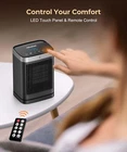 Automatic Motion-Sensing Heat: Enjoy hassle-free heating with an intelligent motion sensor that activates the heater as soon as you enter the room and switches it off automatically after 180 seconds of no movement. Ideal for saving energy and maintaining comfort without manual adjustments, making it perfect for busy days or when you want to focus on other tasks during cold weather. Comprehensive Safety Features: Stay safe with multiple built-in protections, including overheat and tip-over protection, flame-retardant materials, and a child lock feature for peace of mind in homes with children or pets. The 24-hour automatic shut-off adds an extra layer of security, and the lightweight design with a safe plug makes it suitable for various spaces like bedrooms, offices, garages, and even outdoor areas. Fast & Powerful Heating: Get immediate warmth with 1500W PTC ceramic heating technology, which rapidly delivers heat in just seconds. Choose between two power settings—1500W for powerful heating or 1000W for energy-saving comfort. This portable heater ensures efficient heat distribution, quickly warming up small to medium-sized spaces like living rooms, offices, or even your hands and feet during chilly days. Energy-Efficient Heating Modes: Customize your comfort with 4 heating modes: High, Low, ECO, and Human Sensor. The smart ECO mode automatically adjusts heat output based on the room temperature, ensuring efficient and consistent warmth while reducing energy consumption. This heater is an excellent choice for anyone looking for warmth without high electricity bills. Convenient & User-Friendly Controls: Effortlessly control the heater with an intuitive LED touch-screen or a remote control, allowing you to adjust the settings from across the room. Features include a digital thermostat with a temperature range of 41-95℉, a 1-12 hour timer for scheduled heating, and 70° wide-angle oscillation for even heat distribution. This space heater is pre-assembled and ready to use out of the box, making it an ideal choice for bedrooms, offices, or any space that requires consistent comfort. Product Description 1 Power Heat 2 Rapid Warmth 3 Wide Coverage 1 Precision Control 2 Silent Comfort 3 User-Friendly