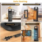 The indoor space heater with 1500W advanced PTC Ceramic Heating, providing rapid and efficient heating in seconds, can quickly heat an area of 300 square feet. The heater boasts 75°oscillation, ensuring efficient and widespread heating in your room The electric heater with ETL-Certified Safety, made of V-0 flame retardant materialsand avoiding any fire hazard. It will shut off automaticlly when reaches limit 122 °F or left unattended for 12 hours. Reinforced plug to ensure the heater is safe to use at all times, perfect choice for families with children and pets With one-touch control panel , it is easy to change the temperature and mode. You can also use the remote control to operate the heater from up to 24 feet away while working. The portable design combined with the ergonomic built-in handle, will allow you to easily move your space heater to any room you want. Keep your office, kitchen, bedroom, guest room, study or living room warm always in Winter Operating at just 36dB, this room heater utilizes oblique airflow technology to effectively reduce wind noise, making it 12% quieter than traditional electric heaters. It is comfortably quiet to use in a bedroom while sleeping. Ideal to set this portable heater wherever you want to make it warm The space heater for indoor use allows you to choose the mode you like(High/Low/ECO Mode), HI mode support instant heat in seconds(1500W). Smart ECO Mode features a 41-90°F thermostat in 1°F increments that independently adjusts its power (900W or 1500W) based on ambient temperature, keeping your room at constant temperature and saving more energy bills throughout cold days