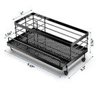 The sponge rack has more storage space and can accommodate up to: detergent*2, sponge*2, ordinary brush*4, sink plug*1. If you have any questions, please feel free to us via , we are very helpful welcome your letter and always waiting for a reply! 【MORE STORAGE SPACE 】Compared to other kitchen sink caddy sponge holder expands to 5.3 inches wide and 9.49 inches long, enhancing its kitchen organization function, and allowing flexible placement of sponges, dish soap, soap dispensers, brushes, sink plugs and more. Make the most of every inch of space and make your kitchen look cleaner. 【REASONABLE DIVIDER DESIGN】 The sponge holder for kitchen sink ergonomic divider design allows it to have 4 separate storage spaces, Different items are placed in different areas, so as to achieve a well-organized effect, so that your counter is no longer cluttered. 【KEEP DRY】The sponge holder features an elegant petal pattern cutout design and sturdy stain-resistant tray to keep it looking good. The hollow bottom design increases drainage speed, the drip tray collects excess water, keeps the sink rack and countertop dry. 【ANTI-RUST STURDY MATERIAL】: We chose a stainless steel material more suitable for kitchen sinks to make the sink caddy and added sandblasting technology to the surface for secondary protection. This improves the corrosion and scratch resistance of the sponge holder, which will still look new after long-term use. 【SATISFACTION GUARANTEED】: The kitchen sink organizer is ready to use upon receipt, no installation required and is widely used on counters or bathrooms, making it a satisfying gift. If you have any questions during use, please consult our staff. We want to provide you with a pleasant shopping experience.(USPTO patent pending)