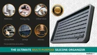Are looking to declutter your home? Do you have problem areas that you just don't know how to tackle? Modern Joe's has the perfect solution for you; we have worked extremely hard and have carefully designed and developed a one-of-a-kind premium silicone tray organizer. Life gets busy but let us help you take control again! This product is the ultimate solution to a variety of challenging spaces such as your kitchen, bathroom, car, and the office (just to name a few). However, this tray is much more than just a sink organizer or trivet - its superior functionality and high-quality build and design will change the way you organize your spaces forever! UNIQUE DESIGN: Made from premium flexible and non-slip silicone, Modern Joe’s sink organizer was designed for your safety and durability in mind. The high sides and strategically placed ridges are to ensure any water or liquids do no touch the items they are placed on, thus keeping counter tops dry and clean. The ridges also allow for improved air circulation. The silicone is also heat resistant up to 450°F. ULTIMATE VERSATILITY: This premium silicone caddy was designed to be used in a wide variety of areas. Keep the kitchen and bathroom clean and dry by placing sponges, brush scrubbers, soap, and toothbrushes off the countertops. Provide a non-slip surface to hold hot hair tools, cup of coffee, or pots off the stove. Use it to store loose change and keys at the entryway table. It can also be used as a drying mat or table pad to keep surfaces protected and organized. The possibilities are endless! WATERPROOF & EASY TO CLEAN: Being such a highly versatile product, we at Modern Joe’s have ensured that unique high ribbed design helps to dry items faster by maximizing drainage and air flow. The premium silicone caddy is also waterproof; simply pour any excess water out. Cleaning is also a breeze as you can hand wash it or placed in the top rack of the dishwasher. Size of silicone caddy is: 11”L x 5.5”W x 0.6”H. SATISFACTION GUARANTEED: If have any questions or concerns with this product, please do not hesitate to contact us. We offer a one-year warranty on this product. At Modern Joe’s, we are here to ensure you are 100% satisfied with your purchase!