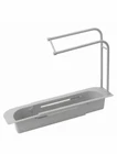 Telescopic Sink Holder, Sink Organizer, Expandable Storage Drain Basket Rack Sponge Holder Sink Caddy Soap Drain Tray Organizer Rag Rack Silver or White Features: 【NEW EXTENSIBLE DESIGN】: It can meet different needs, adapt to different sink sizes, freely adjust the length, can be a large capacity storage. 【THE IDEAL KITCHEN TOOL】: Open and hollow design allows water to drain fast, Perfect for kitchen storage organizer of sponges,brush,dish rags kitchen tools. The sink rack will keep your utensils away from dirty water in the pool and prevent bacterial from growing. 【2-IN-1TOWEL BAR】: Intimate everyday design,can keep the fabric dry, ventilated, clean and hygienic. 【EASY INSTALLATION】: Humanized design, easy to remove and wash.Made of PP material,it is more stable and does not shake. 【VENTILATED DRAIN】: Create a healthy environment, keep it dry, drain holes are evenly distributed, and it is healthier not to collect water. 【EASY TO STORAGE】: Easy-to-store cleaning utensils, such as dishwashing liquid, hand sanitizer, ball brush, etc. It is comfortable to handle at an appropriate height, and convenient for daily cleaning. Specification: Materials: PP Weight: about 260g Product size: 39.5x27x8.5 cm / 15.6x10.6x3.3 inch Package included: 1x Telescopic sink rack Notes: 1.The actual color may differ slightly from the image due to different monitor and lighting effects. 2.Please allow 1-3 mm deviation due to manual measurement.