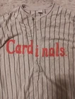 Show off your love for the St. Louis Cardinals with this officially licensed Fabick pinstripe jersey. Perfect for any Major League Baseball fan, this gray jersey features the team's iconic logo and is made with high-quality materials for a comfortable fit. The size is a men's Large and the jersey is perfect for regular season games. This throwback game giveaway is a must-have for any fan of the St. Louis Cardinals. The jersey is made in Pakistan and is perfect for those who want to show off their team spirit. Get your hands on this jersey today and add it to your collection of sports memorabilia!