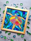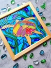 This beautiful piece of art is a unique addition to your home decor. It features a stunning rainbow turtle with intricate details, made from high-quality stained glass. The colorful design brings the ocean life into your room, providing a relaxing atmosphere. This suncatcher is hand-painted and has a contemporary original production style. It is perfect for collectors of decorative pottery and glassware. The material is durable, ensuring that it lasts for many years. Add this eye-catching piece to your collection or give it as a gift to a loved one. Original Rainbow turtle painting on glass A good idea to give a touch of modern taste to your home, living room, kitchen, bedroom or office…perfect gifts for your relatives and friends *Title: Rainbow turtle *Size Painting: 8"x8" (20x20 cm) (On request I can paint this subject in other sizes. Please, contact me) *Original handmade stained glass painting *Style: Modern, Abstract *Fast Shipping