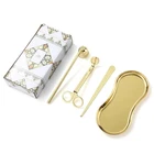 Stainless Steel Candle Caliper Tray Set 4pcs Durable Aromatherapy Making Tool • This Stainless Steel Candle Caliper Tray Set is the perfect tool for anyone interested in candle making and aromatherapy. • The set includes four durable trays that are specifically designed for calming and relaxing purposes. • Crafted from high-quality stainless steel, these trays are built to last and provide a non-restrictive environment for your candles to burn evenly. • Ideal for both beginners and experienced candle makers alike, this set is perfect for creating a variety of candle scents and sizes. • Whether you're looking to add to your collection or simply want to enjoy the calming effects of aromatherapy, this Stainless Steel Candle Caliper Tray Set is the perfect choice. Description: Product Name: INS Candle Tool 4-piece Set Product material: stainless steel material Accessories: candlestick scissors, candle extinguishing bell, candle extinguishing hook, candle tray Color options: Deep Black, Primary, Light Luxury Gold Size: Candle extinguishing scissors Size: 14 * 6 * 0.4cm thick Candle extinguishing cover size: 16.5 * 3 * 4cm Candle extinguishing hook size: 16.5 * 1.5cm Eye shaped tray: 18cm * 8.5cm Package included: 4 x Making Tool