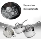 1. Fine polished 18/10 stainless steel with thick aluminum disc bottom constructed of Impact Bonded between steel layers for maximizing even/quick heat distribution 2. Reflective finish overall for appearance and easy cleaning; 4mm Tempered glass lid with steam hole to monitor food cooking and provides a seal; 3. Riveted stainless steel handles assemble are durable for usage and fit for grip Handles keep comfortable and have a hole for hanging; 4. Multipurpose and holds temperature for boiling, frying, steaming, and more Induction compatible and works on: gas, electric, glass, ceramic, halogen, etc. ; 5. Oven safe to 500F, lid to 350F; 6. Dishwasher safe