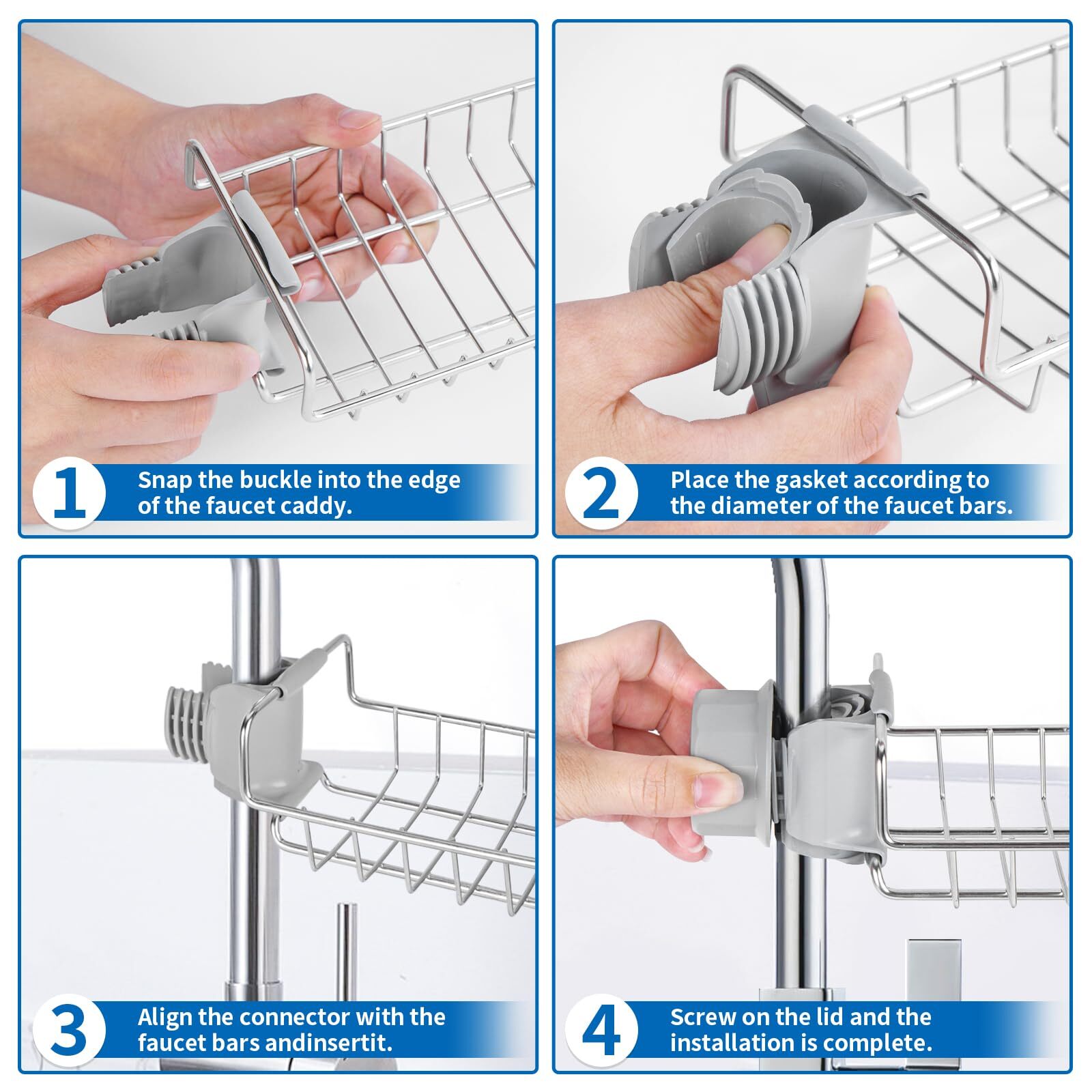 ONLEMY Faucet Sponge Holder for Kitchen Sink,Stainless Steel Faucet Rack,Faucet Sponge Holder,Faucet Caddy for Kitchen Sink,Sink Organizer Rack for Kitchen and Bathroom 【Easy to install】 Suitable for most shower bars ranging from 0.71 to 1.06 inches in diameter(round faucets only). Needs no extra tool for installation that takes only less than five minutes. Comes with an Instruction Manual. 【Most durable material】Made of SUS304 stainless steel with the best anti-rust capacity in humid environments, improving the corrosion resistance of the shower rack and ensuring its long service life. 【Space saving】Makes full use of your space to keep the sink area clean and tidy and allows you to readily reach sponges, scrubbers and the like. 【Drainage Design】The cleverly designed strip-shaped hole at the bottom of the rack ensure that your sponges, scrubbers, and brushes remain dry and free from unpleasant odors. 【What is included?】One faucet rack,one connectors and one Instruction Manual. We provide you with a 100% REPLACEMENT or REFUND warranty if you are unsatisfied with the product you have purchased for any reason. SHIPPING - We offer FREE shipping on all orders! - We ship within 3 business days of payment, usually sooner - We use a selection of shipping services such as UPS, FedEx, USPS etc - We only ship to the lower 48 states, no APO/FPO addresses or PO Boxes allowed International buyers – please note: Import duties, taxes, and charges aren't included in the item price or postage cost. These charges are the buyer's responsibility. - Please check with your country's customs office to determine what these additional costs will be prior to bidding or buying. - We have confidence in our products, but if you are not fully satisfied please contact us within 30 days of purchase and you will get full refund. * Order Cancellation Policy ** You can return a product for up to 30 days from the date you purchased it. 1. The seller reserves the right to cancel the special case only due to eBay cancellation fee. 2. The decision of seller is the final. 3. The seller will respond to the cancellation request within 2 business days. Please wait for the result of cancellation. 4. In case the cancellation is not completed by some reasons, the buyer can follow the options below to get the refund. 4.1 The buyer can reject the item when it arrives. 4.2 The buyer can send the item back to the seller within 30 days If the buyer receives item (USA Shipment ONLY). The seller will provide the FREE return label to the buyer when the buyer opens " Return Item" case on eBay by using the reason as "Change my mind" ONLY. 5. When buyer has placed the order. The order will be processed and completed by automatic warehouse system within 5 minutes. In case that buyer sends the cancellation request after 5 minutes of placing the order, the request will be rejected. **Sending direct message to cancel the order is not allowed for every case.* Return Policy For the return case - If buyer would like to return the items for refund or replacement, please CONTACT SELLER to receive the free return label from seller. The refund or replacement will be processed with the tracking number of return label which is provided by seller only. The other ways of return which are not approved by seller will not be processed for the refund or replacement. CUSTOMER SERVICE - We try our best to make sure every customer is completely satisfied. - If there's a problem, feel free to message us! - We're happy to help.