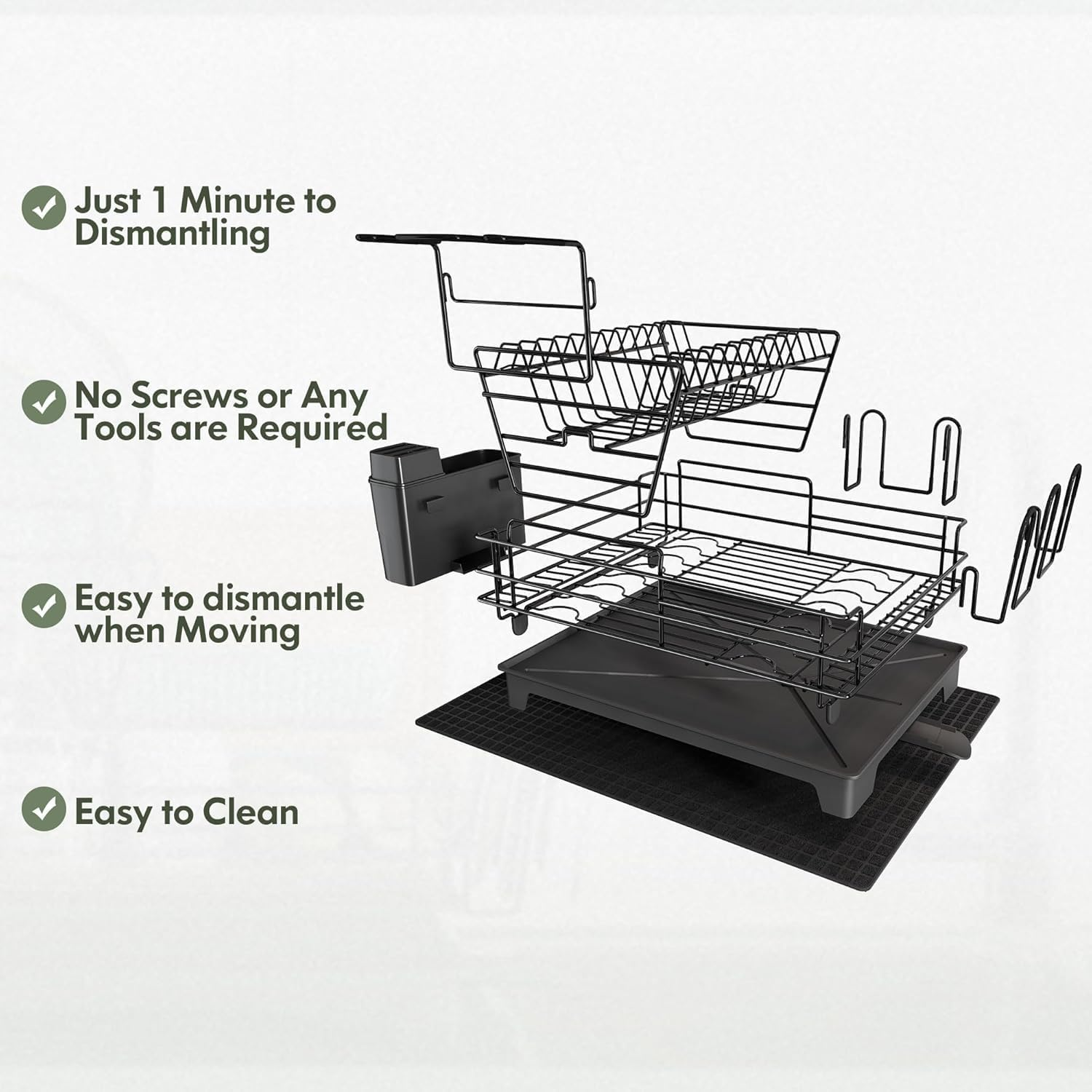 Two Tier Extra Large Capacity: Free up 50% of the kitchen counter space and create a neat and clean kitchen, with a size of 15.9(L)*13(W)*11.6(H) inches. This highly-customizable dish rack comes with a range of changeable elements, including one dish drain boards, a microfiber mat, a utensil holder, 3 cup holder attachments as well as a cutting board attachment, you can store up to 10 individual plates in the rack, while the bottom tiered can accommodate bowls and pans Rustproof and Super Sturdy: The Dish Drainer made of heavy duty stainless steel with nano-coating finish, the 2 tier dish rack will resist any damage that causes rust or discolor - durable and easy to clean which made to last, this kitchen dish rack is a solid metal drying rack choice for every household, it passed a 24-hour salt test Easy to Install and Fully Adjustable: No screws and tools are needed, you just assemble them together, it's super easy and my child can do it too! All the attchments are detachable, you can install them according to your need! Package includes 1 dish dryer rack,1 cutting-board holder, 1 wine glasses holder, 1 cups holder, 1 drainboard Set, 1 dish drying mat, 1 wide utensil holder Removable Top-Shelf Design: Our two tier dish drying rack and attachments can expand the countertop counter, so it holds more dishes than a regular dishrack. You can install the top layer in the plate drying rack or place it in sink or wherever you want, which convenience to fit the cabinet height Product Description A Customization Dish Rack is the New Home Essential Items! Are You Still Troubled With Too Many Dishes On Your Kitchen Counter? This Stylish and Durable Dish Drying Rack, with A Durable Design and Enough Space for Tableware, Plates, Bowls, Glasses And Cutlery, MAJALiS Dish Drainers Is The Ideal Choice of Kitchen Drying rack For The Average Household. 1 Easy To Install 2 High Load-Bearing 1 Rustproof Material 2 Anti-slip Feet Pad Multiple Attachments 1 Main Rack 2 Plate Rack 3 Accessories MAJALiS Dish Drying Rack Product Information Add to Cart Add to Cart Add to Cart Add to Cart Add to Cart Add to Cart Customer Reviews 4.4 out of 5 stars 11,725 4.4 out of 5 stars 119 4.4 out of 5 stars 11,725 4.6 out of 5 stars 2,337 4.5 out of 5 stars 914 4.6 out of 5 stars 2,337 4.5 out of 5 stars 1,363 Price $46.99 $ 46 . 99 $24.99 $ 24 . 99 $35.99 $ 35 . 99 $124.99 $ 124 . 99 $29.99 $ 29 . 99 — $29.99 $ 29 . 99 Color Black / Grey Black / Silver Black / Grey Black / Silver Black / Silver Black / Silver Black / Grey Material Stainless Steel 304 Stainless Steel Stainless Steel 304 Stainless Steel 304 Stainless Steel 304 Stainless Steel Stainless Steel 24-Hour Salt Test ✔ ✔ ✔ ✔ ✔ ✔ ✔ Dishwasher Safe ✔ ✔ ✔ ✔ ✔ ✔ ✔ More Suitable Scenarios Kitchen Counter Countertop & Over Sink Kitchen Counter Over Sink In Sink / Over Sink / Counter Over Sink Kitchen Counter