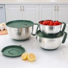 No kitchen is complete without a set of mixing bowls. Typically one should have at least three mixing bowls of different sizes, as it is often necessary when preparing vinaigrette, muffin pancake batters and bread dough, whisking eggs, cake mixtures, marinating foods for the grill, storing leftovers or even serving a salad or another dish. Why chooses stainless steel mixing bowls set with spout, handles and lids? → Made from high quality stainless steel that is durable and safe for food. → Lightweight than glass and ceramic bowls, which makes them easy to handle, even ideal for the young bakers. → 3 different sizes : 6½" diameter x 4" deep, 8¼" diameter x 4¾" deep, 9¾" diameter x 5½" deep. → The silicone handles make the bowls easier to hold down on a surface when mixing. → The non-slip silicone bottom ensures the bowls will stay in place when you mixing. → Inner measurements with quart and liter markings for easy measuring. → The spout allows for easier pouring. → The fitting lids for all bowls keep your food fresh and prevent messes. → Dishwasher safe and refrigerator safe. → 100% manufactory warranty. If you are not completely satisfied with our product, just return it to Amazone and we will refund you the money back or replace it. Click Add to Cart above and buy it now . Start to enjoy your cooking and baking with our mixing bowls set. Notice: Wash in warm, soapy water and dry thoroughly before first use. Please ensure that the bowls are dried properly before storing them. STURDY & DURABLE: Made from 18/8 stainless steel which won't rust, crack or chip. They are more durable than plastic bowls. The salad bowls are lightweight than glass and ceramic bowls, which makes them easy to handle EASY TO USE: The silicone handles make the bowls easier to lift and hold down on a surface. The pour spout allows for easier pouring. The non-slip silicone bottom ensures the bowls will stay in place when you mixing ERGONOMIC DESIGN: Inner measurements with quart and liter markings for easy measuring. The fitting lids for all bowls keep your food fresh and prevent messes EASY TO CLEAN & STORE: Dishwasher safe and cleans easily with warm water. Nesting bowls stack perfectly for storage THREE DIFFERENT SIZES: 1.5 QT, 3 QT, 5 QT. Perfect for preparing vinaigrette, muffin pancake batters and bread dough, whisking eggs, cake mixtures, and much more. Perfect gift for birthday, housewarming, Christmas, Thanksgiving and so on