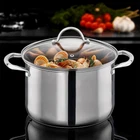 Our stainless steel stockpot can hold up to at a time and is suitable for any kitchen. Easy to use for both culinary beginners in the home kitchen and experienced commercial chefs. It is versatile that you can use it to cook family-sized stews, soups, pasta, sauces or canned water. The stockpot features food-grade healthy nickel free stainless steel with excellent polishing process, construction with great stability and strength, takes into account durability, aesthetics and health-conscious. The encapsulated aluminum base can distribute heat quickly and evenly, to achieve fast and lasting heating. The stainless steel stockpot can be used on any stovetop, is sensitive-friendly, oven-safe, has the lid removed, and can be used at temperatures up to 500 ℉. It is worth better care, so we recommended hand wash and dry the water after cleaning before storing. Stackable design, to maximize storage space and keep your kitchen organized. Our stainless steel stockpot has riveted stainless steel side handles for comfortable and durable, and reliable strength. It is your reliable choice for cooking and serving dishes, whether you're carrying them to the kitchen or the backyard. The stockpot comes with a clear tempered glass lid that circulates heat and moisture during cooking, to retains the natural flavor and nutrients of the food, and also provides better visibility to check the food at a glance. The small hole in the lid helps to release steam and prevent boiling from spilling over. This stockpot is the perfect tool for every cooking lovers. We are committed to providing quality products and service. If you have any questions about our products, please feel free to contact us. FOOD-GRADE STAINLESS STEEL: The 14qt stock pot is made of high-quality stainless steel, ensuring durability, corrosion resistance, and a sleek modern look. Its encapsulated bottom ensures even heat distribution for perfect cooking results, whether you're simmering, boiling, or stewing. VERSATILE COOKING: The perfect choice for making large quantities of soups, stews, and stocks, catering to the needs of both home cooks and event caterers with its generous capacity. COOKTOP COMPATIBILITY: Effortlessly compatible with induction cooktops and all other stovetops, offering flexibility in cooking methods and adapting to various kitchen setups. TEMPERED GLASS LID & ERGONOMIC HANDLES: The see-through tempered glass lid allows for easy monitoring of the cooking process, while the securely riveted handle ensures a comfortable and safe grip, enhancing both convenience and safety. DISHWASHER SAFE & OVEN SAFE: The stock pot is dishwasher safe, but it is recommended to handwash it in order to maintain its stainless steel shine. It is also oven-safe for added versatility, effectively distributing and retaining heat for even cooking. The maximum temperature it can withstand is 500°F/260℃, except for the glass lid which can handle up to 350°F/176℃.
