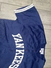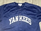 Get your hands on this pre-owned, stitched Derek Jeter #2 New York Yankees jersey in size large. Perfect for any baseball fan, this jersey is a great addition to your collection. Show off your team spirit and love for the game with this high-quality, major league baseball (MLB) jersey. The blue color and Yankees team logo make it a must-have for any true fan. This jersey is made for men and is ideal for casual wear or game day. Don't miss out on the chance to own a piece of sports history.