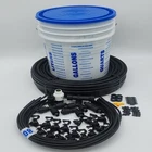 Complete Greenhouse Misting/Propagation System Kit comes in reusable 5 gallon measuring bucket with lid Kit Includes: Pressure Regulator Screen Filter Connection for standard Garden Hose Bibb or faucet 100' main line (1/2" poly header) 16 misting nozzles with LPD (leak prevention/non-drain device). Hole punch/installation tool 2 End closure for poly line 2 Ells 1 Tee 1 Repair Coupler This Kit includes everything to get started with greenhouse irrigation. They come ready to plumb into a standard 3/4" garden hose or faucet. Great for the backyard gardener or if you are just getting started with greenhouse irrigation. System is designed to use over head on benches for starting new cuttings or watering existing plant stock. Misters should be hung 3-4 feet above crop and spaced 3 feet down the 1/2" line to cover up to a 4' wide bench 40-50' long (hang higher for cooling or humidification). These have the LPD feature to prevent drain-down of lines after run times allowing higher uniformity and instant on/off operation (no delay when controller turns on/off valve). No extra pressure needed to operate (30 PSI recommended), works off standard garden hose or faucet . Eliminates the need for hand watering while giving very high uniformity over the table. Other items can be added to complement the system such as controller/timers, fertilizer injectors, more zones/lines, sensors (photo, temperature, and moisture), or a flow meter. This is the same material used by the commercial nursery growers and greenhouses. These can even be used to help lower temperature when operated in the cycle mode with a Mist/Irrigation controller (not included). This system can be expanded for future growth, and the sprinklers are modular to allow for change if the application requires it. The drawing shows a two row set-up with the modular type sprinklers. This kit can be modified to do more rows with extra fittings. Let us Know what you would like to see in our store. Contact us if there are any questions or if you need assistance in system design and/or layout. Thanks For visiting our Irrigation-Mart E-store. 800 SAY-RAIN