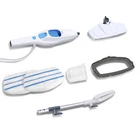 Electric Hot Steam Mop Hand Held Cleaner Steamer Floor Carpet Washer Window Descriptions: -5 in 1 Floor Steam Mop – Portable floor steam mop cleaner with dualblast steam mop head, specifically designed to be used on hard floors, carpets, windows, mirrors, garments and laminate. Perfect for kitchens, bathrooms and bedrooms -Powerful and environmentally friendly: Features 1500 Watts of steam cleaning power! No need to add chemicals into your H2O HD steam mop, simply use water to steam clean your entire home All in one steam mop easily switch to hand-held mode for garment steamer, grout cleaner, perfect for carpets and any floor type -CLEAN HARD FLOORS WITH THE POWER OF STEAM: Confidently clean all types of sealed hard floors, including hardwood, marble, tile and stone. No harsh chemicals, just water. -CLEAN AND SANITISE: up to 99.9% of household bacteria with the power of steam. (Sanitisation studies were conducted under controlled test conditions. Household conditions and results may vary. ) -REUSABLE CLEANING PADS: cleaning pads are machine washable and reusable, made from absorbent, quick-dry microfibre fabric. -EASY TO USE : Simply fill the large 400ml tank with water using the included Filling Flask and you’re ready to go. Activate the steam with a manual pump action for total control. 30-second heat up. Feature: -Tank capacity: 400ml (tank is not removable) -Power: 1500W, frequency: 50/60Hz -Power cord length: 4.8 metres -Single product packaging weight: 3KG, single product packaging size: 21 * 18.5 * 62.5cm -Steam volume: >28g/min -Temperature of steam port: >100℃ -Metal rod material: aluminium tube handle material: ABS -How to use: Plug in the power supply and press the switch, the LED indicator located at the front of the steam mop body will turn green. After preheating for about 20 seconds, the steam mop will emit steam and you can clean it.