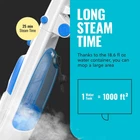 Ready to Use in 20 Seconds – Our lightweight, compact mop steamer heats up in about 20 seconds. No more waiting! Steam mop accepts water in its large water tank 18.6 fl oz (550 ml). Extra Long Cord – Enjoy the freedom our 28 ft cord offers as you effortlessly maneuver around furniture. No more switching outlets! Reach every corner with ease. Steam for a Long Time – Just fill the tank, turn it on, then adjust the steam flow with a simple twist of the dial. It’s time to simplify your chores and harness the power of steam. What’s Included – PurSteam Steam Mop with foldable handle, 2× washable microfiber cloth steam mop pads, 1× carpet glider, and a measuring cup. Fold down the handle to easily store it in a cupboard or closet. Sanitize Floors – Now it’s simple to clean hard floors and carpets with our upright steamer. Much easier to use than a bulky carpet cleaning machine. Great floor cleaner for tile, sealed stone, marble, laminate floors, and to freshen carpets. Suitable Around Pets – Steam with water instead of harsh chemicals. Quickly clean pet bedding, toys, and naturally sanitize floors. Use the high-temp steam (212° F) to avoid harsh chemicals. You can steam for up to 25 minutes depending on the setting. Product Description Large Tank with Container It’s easy to fill the 18.6 fl oz (550 ml) water tank on this PurSteam Steam Mop with its included measuring cup. Two methods: (1) open the tank and fill it while it’s on the steamer; or (2) Remove the tank and fill it, then reinstall it on the mop. When you’re done steaming, fold it to store it. Long Steaming Time Steam for up to 25 minutes at a time with a full tank of water! Use this steamer for cleaning all over your home. It’s designed for cleaning carpet and hard floors in the upright mop position. Easily Adjust Steam Flow Quickly adjust the amount of steam with the twist of a knob (low to high). This puts you in control of the rate of flow! It’s easy to stop steaming, just press the power button to turn it off. Carpets This easy-to-store steam mop is also a carpet cleaner. Add the included Carpet Glider accessory–with one of the provided microfiber cloth mop pads–then start steam cleaning your carpet. No need to rent a bulky carpet cleaning machine when you use this lightweight steam mop to clean your home. Tile / Marble Steam cleaning tile and marble floors is simple with this floor cleaner. Power it on and press the power button (it warms up fast!) to release steam. Move across the floor and position the steamer above each area for about 8 seconds at a time. Refer to our included manual for instructions. Parquet / Laminate Unlike many steam mops for floor cleaning, the PurSteam Steam Mop will steam clean laminate or parquet flooring. Use a washable microfiber cloth on the mop head and follow all the instructions. It’s simple to keep your floors clean. Concrete and More! Got an industrial look or fans of a modern home? You probably have concrete floors. Our steam mop also works on ceramic, stone, linoleum, and sealed hardwood floors. Washable Mop Pads In addition to the 2x included reusable mop pads, we offer replacement pads for purchase separately. Our microfiber pads are machine washable! The ultra-fine microfiber cloth is soft and gentle on surfaces. No Chemicals Needed Now you can clean the natural way! This PurSteam Steam Mop does not use harsh chemicals. It cleans with heated water, which is great for people with allergies, pets, or small children. This is a must-have multi tool for housework. Due to the hot steam, please use care when operating it and when you replace or remove an accessory. Includes 2x replacement pads, carpet glider, and measuring cup Folding handle for compact storage Steam for about 25 minutes Detachable water tank Voltage/Frequency: 120 V/60 Hz Capacity: 18.6 fl oz (550 ml)