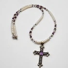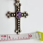Sterling Cross Bezel Set Amethyst Pendant Button Pearl Crystal Necklace Handmade This Is A Signed Piece. I Cannot Identify the Maker. Beautiful Piece. Beads Are 4mm