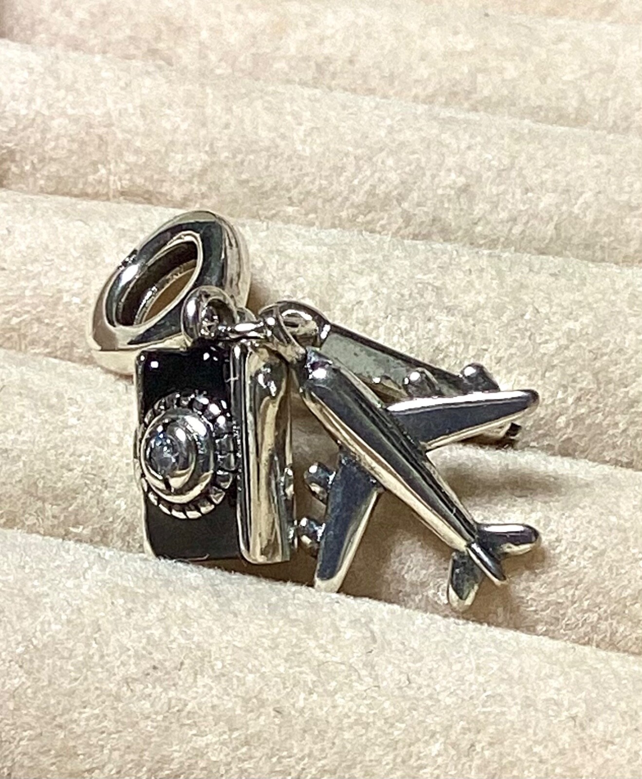 Silver Travel Aeroplane Passport Camera Airplane Charm Unbranded charm that fits charm bracelet Pre-loved in Excellent Used Condition s925 Please see my other items which you may also be interested in