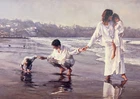 STEVE HANKS " Holding the Family Together " 1650 Limited Edition Print 14.75" Height x 34" Width image size MINT CONDITION Steve Hanks Although teachers often cited his artistic ability, Steve Hanks’ main interest while growing up around San Francisco was sports. As a young teenager, Hanks pursued surfing and tennis with passion. He eventually tired of a steady diet of competitive tennis, but continued to surf, finding a spiritual connection with the ocean. “Surfing had a strong influence on my paintings,” he says. “The ocean often appears in my work, because I have such strong feelings for it.” Although it was apparent early on that he had talent, Hanks refused to do the required assignments in his high school art class and earned a grade of C in the class. “To prove I was good, I did a one-man show at the high school and sold my first painting to another art teacher,” he says. After high school Hanks enrolled in summer session commercial art courses at the Academy of Art in San Francisco. “The only way I could convince my parents to let me go was to say I was going into commercial art,” he says. “I didn’t even know what that was!” He did well in his commercial art classes, but it was a life drawing class that captured his interest. He focused his energy on the study of anatomy and figure drawing and transferred into the California College of Arts and Crafts in Oakland, California. He graduated in the 1960s with a Bachelor of Fine Arts degree, and then moved back to New Mexico in search of a home art gallery. Initially, he drew in pencil and painted in oils. His paintings were impressionistic while his drawings were more realistic. Eventually, an allergic reaction to oils forced him to experiment with watercolors. Using the techniques learned from other mediums, he found he could create watercolors as “finished” as oils. Deeply affected by the emotions, shifting attitudes and music of the 1960s, the music of 60s icon Bob Dylan often accompanies Hanks as he paints in his studio today. Steve Hanks’ paintings are much more than endearing images of women and children. Rather than conveying a specific message through his paintings, Hanks prefers to explore memories and emotions. “All art is an escape to somewhere you want to be or a feeling you want to have," Hanks says. "People see different things in my paintings because we all have different backgrounds and feelings.” Hanks highly collected nudes convey an introspective solitude that prompts the viewer to think about his or her own life and path. “Women occupy a special niche in my sensitivity. They express more storytelling ability. There’s more magic in them,” he says. Art jurors began recognizing the quality of his work in 1973. Steve Hanks won the Arts for the Parks Marine Art Award of Excellence in 1990 and 1994, and has been one of the Arts for the Parks top 100 artists since 1989. In 1991, Steve Hanks received the National Watercolor Society Merit Award and the National Academy of Western Art awarded him the Gold Medal in 1992. Since 1993, he has been one of U.S. Art Magazine's top ten American artists. When the Pacific Rim show in Seattle, WA decided to open the show up to a wider variety of art in 1999, they selected Steve as Artist of the Year. Steve was one of five winners selected to the U.S. Art Hall of Fame 2000. He was named as one of the top 25 selling artists in the June, 2002 issue of Decor magazine. The 7th Annual Andre Agassi Grand Slam for Children chose Steve as their Feature Artist in 2002. This is a limited edition Print signed and numbered by Steve Hanks . It is in perfect, mint condition. It has its certificate of authenticity and write up on this incredible artist. This Print is guaranteed to arrive MINT and in perfect condition. We offer free shipping, completely insured everywhere in N. America! -------------------------------------------------------------------------------------------------------------------------------------------------------------------------------------------- Phone us toll free anywhere in N. America - anytime ! We are authorized dealers with almost every publisher in N. America and know we can list world class artists at remarkable prices !! We offer FREE pick up of winning items at our Canmore Art gallery located in Canada's beautiful Rocky Mountains. Shipping is done in some of the best built, strong boxes ever seen - always completely insured . Any problems and we ship a new piece immediately - no cost to you!! Think we have superior service, come check out our ART COUNTRY CANADA Gallery on your next visit to BANFF NATIONAL PARK . We will send an email within 24 hours of the auction ending. Canadian residents add GST. We accept paypal and anyone can call the gallery toll-free with a visa or mastercard. We try to ship the same day, but some items may ship the following week. Shipping Information All items are completely insured to arrive in MINT condition! We ship in some of the strongest boxes in the industry! Art Country Canada Gallery Art Country Canada Rocky Mountain Art Gallery 729 Main Street Canmore , Alberta T1W 2B2 Mill Pond Press Dealer / Somerset Publishing Dealer / Wild Wings Dealer and many more TERMS OF SERVICE EBAY is one side of our business, having a fine art gallery we are able to custom frame most items in our gallery. We work hard to do business the old fashioned way, we treat all customers as if they are family. We answer emails courteously and are fair in all our dealings. We have a toll free number for easy service. Please feel free to contact us at anytime, with any question or comment. We make every effort to answer all emails as quickly as possible. WORLDWIDE SHIPPING We sell and ship worldwide, so please email us for a quote to any location, we dropship to any address if it is a gift. We charge shipping based on the Canadian Postal System and all items are sent fully insured. METHODS OF PAYMENT We accept Paypal which ac