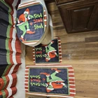 Add a touch of holiday cheer to your bathroom with this Stink Stank Stunk Grinch Merry Christmas Shower Curtain or Bathroom Set. Featuring a festive pattern of grinch characters and a colorful design, this fabric curtain is perfect for your shower or bathroom. Made of polyester and fabric materials, it is waterproof and machine washable for easy maintenance. Measuring 72 inches in length, it is suitable for any bathroom and shower. Get ready to celebrate the holidays in style with this fun and unique shower curtain set. Brand new in sealed bag Great for gifting this season! Approx Dimensions Shower curtain 72x72in Bathmat 16x23in Toilet seat cover 15x17in works on round or elongated Toilet mat 18x15in