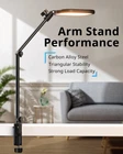 [Bright Desktop Lighting] The desktop lamp effectively illuminates the entire workspace, meeting the needs of most desktop activities. It is ideal for close-up lighting scenarios such as reading, writing, and makeup, providing perfect lighting for home office environments. [Ideal Companion for Creative Work] With 112 LED beads, this office lamp provides uniform illumination, eliminating shadows and glare for clear details. The adjustable color temperature (3000K to 6500K) allows users to select the perfect light for different atmospheres. 10 brightness levels help you find the ideal setting to enhance comfort and productivity, enabling creators to perform at their best. [Flexible and Space-Saving Design] With dual arms measuring 13.5 inches and 14.5 inches, users can easily adjust the lamp's position to ensure light covers the desired area while saving valuable desktop space. The desk clamp expands to 3 inches, accommodating different tabletop thicknesses for secure installation, making it convenient for use in various environments. [Rotatable and Modern Lamp] The arm design allows for flexible rotation at multiple positions, enabling users to easily adjust the lighting angle. The lamp head can rotate 180 degrees, allowing for quick changes in light direction to suit different activities. Made from carbon alloy steel, the arms provide exceptional strength and durability, reducing wobble. This modern material also adds a stylish touch, seamlessly fitting into any interior design style. [Ideal for Various Scenarios] This zoom lighting is suitable for home offices, student desks, and creative studios, offering flexible lighting solutions. Whether for reading, writing, or makeup, users can easily adjust the light to meet various activity needs. Its stylish design fits perfectly into any modern home or office environment.