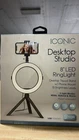 Create a selfie-ready setting in seconds with the ICONIC Halolight 8-inch LED Ring Light. This compact filler light provides multiple brightness settings and 3 LED variations to deliver luminosity at almost any intensity, powered by any USB power source and designed with an easy-to-use inline remote. The included desktop tripod stand enables quick setup on any flat surface, keeps smartphones of all sizes stable, and folds compact for easy storage or for carrying in a laptop bag or backpack. LIGHT THAT MEETS YOUR NEEDS: The HaloLight’s desktop tripod stand has 3 LED modes (warm light, cool white, and day light) with 10 additional brightness levels. VERSITILE: The HaloLight’s universal expandable smartphone holster attaches to ball joint head with locking turn knob for great shots and angels. The perfect lighting solution for podcasting, studio recording, video conferencing, online gaming, vlogging, and more! STEADY PERFORMER: The tripod base is detachable, collapsible, and has foot grips for increased stability. TRAVELS WELL: The HaloLight folds into an ultra-compact mode for travel and storage. SPECS: USB powered, easy-to-use inline remote, 14W of power, 1500lm of Luminous Flux. The tripod’s folded length is 7.5”; the expanded height is 3.5”. Included : ring light, tripod stand, smartphone holder, power cable, manual