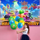 About this item 【Themed Sets of Matching Units】: ☰ Take this good favor for themed party to impress your kids and their friends. ☰ Enrich your kids’childhood dream well,giving them a fantastic surprise. 【Party Decor Is So Easy】: ☰ It contains all of your Stumble Guys theme birthday party tableware needs and is completely disposable. ☰ You can save more time to enjoy this party with your guests. 【Real Savings For You】 ☰ The shiny large backdrop decor will attract you eyes and make everyone laugh.The banner cloth is printed in high definition, making it the perfect party background wall. It is made of thick cloth, not paper. ☰ You will save over 70% compared to buying 2 Stumble Guys party supplies separately. 【Super Value Stumble Guys Package】: ✪ 1PCS X Large Happy Birthday Banner 5x 3ft(150x100cm) ✪ 18PCS Balloons. ✪ 1PCS X Cake Topper. ✪ 12PC X Cupcake Toppers. 【After Sale Service】: ☰ We try our best to bring the best use experience to our customers. ☰ If you are not satisfied with the purchase of this set or have any questions about the product,please contact us at any time.We will definitely solve the problem for you in the first time. ☰ We can aslo custom backdrop other size or pictures you want. Any questions please contact us.