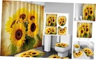 Menu 1. We require immediate payment. 2. We currently accept payment via eBay managed payments only. 3. Once payment is cleared, we will dispatch your shipment within 1-3 business days. Please refer to the "Shipping" tab for more information regarding shipping speed to your destination. Sunflower Shower Curtain Sets with Rugs 4 Piece Flower Floral, Decor for Bathroom Toilet Bathroom Mat, Curtain and 12 Hooks Product description ?[PREMIUM MATERIAL]: This sunflower shower curtain set is made of polyester, which is soft and comfortable. The non-slip bath mat/U type rug are made of high-quality sponge, flannel and non-slip bottom, with super absorption and quick drying. ?[SIZE INFORMATION]: The sunflower bathroom curtain size: 71" L x 71" W, the bath mat/rug size: 29.5" L x 17.7" W, the toilet lid cover size: 17.7" L x 13.8" W, the U shape rug size: 17.7" L x 14.8" W. This bathroom sets size is suitable for most bathrooms or toilet. ?[UNIQUE DESIGN]: Designed with special and unique sunflower pattern, adopt advanced HD pattern printing technology, No fading. Clear sunflower image make your bathroom or toilet more stylish and have a new look. ?[FEATURES]: our sunflower shower curtain sets are extremely durable polyester fabric made, it prevents water splashing outside the bath area and keep your home/bathroom/toilet clean and fresh. ?[EASY TO INSTALL & USE]: We provide 12 strong hooks free for you. You don't have to worry about how to install it. You can use this sunflower shower curtain set to decorate your bathroom, wall, window and any space w you like. PLEASE MESSAGE US IF YOU HAVE ANY OTHER QUESTIONS, AND MANY THANKS FOR READING ALL OF THIS. Copyright ©#. All Rights Reserved.