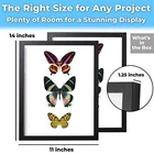 Return Policy Fast Delivery Trusted seller Super-Sturdy 11x14 Black Shadow Box Frame With Glass 2 Pk. Fill Large Wood Memory Box With Wedding Flowers, Jerseys, Cute Pet Photos, Ticket Stubs, or Medals. Great Seashell Display Case Product Description SUPER DURABLE FRAME = SAFETY FOR YOUR MEMORIES. Our large, long shadow boxes feature real glass and wood to protect your bouquet, baby memories, graduation awards or a memorial as it hangs on your wall, standing table or shelf display. BEAUTIFULLY DESIGNED FRAME LOOKS GREAT EVERYWHERE IN YOUR HOUSE. Our sleek black wooden frames are a perfect fit for any decor. Easily customized cases just over 0.5 inches deep can hold shells and sand, flags, dog pictures and more. GUARANTEED FOR LIFE. We offer a No Nonsense Lifetime Satisfaction Guarantee on all of our home decorating needs and accessories. If at any point you're not 100% happy, just send us an email, and we promise to make it right! SERIOUS COLLECTORS LOVE THE QUALITY OF OUR SHADOW BOXES. Keep your collection safe! Our sturdy 3D frames make a safe showcase for bugs, butterflies, insect specimens, dried flowers, wine corks, sports memorabilia and autographed keepsakes. EASY TO HANG, SIMPLE TO USE. Attached hangers have you covered for both vertical and horizontal decorating. To use, lift the back tabs, remove the hardwood tray to add your jersey, rose, collage or memento, then close and hang. Shipping Returns Payment Shipping Shipping is FREE to all addresses other than APO/PO boxes in the lower 48 states. All our stock ships from US-based warehouses. Shipped via USPS or UPS (depending on location and package weight) Unless stated otherwise, all orders will ship within 24-72 hours of your payment being processed. Check our feedback to see the great reviews of FAST shipping we offer. Returns Seller does not accept returns Payment We currently accept payment via eBay managed payments only. Once payment is cleared, we will dispatch your shipment within 1-3 business days. Please refer to the "Shipping" tab for more information regarding shipping speed to your destination.