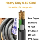 【Welder Extension Cord】ETL Listed, 50 amp NEMA 6-50 plug and 50 amp NEMA 6-50 receptacle. Rated at 40amp 250 volt 10,000 watts welder cord, features excellent resistance to abrasion, oil and moisture as well as flexibility. 【Heavy Duty Cord】STW jacket, 8AWG/3C pure copper wires with 6-50 NEMA plug and connector perfect for heavy-duty performance. 【Power Indicating】The transparent plug and receptacle with indicator lights provide a clear visual indication of the state of power when they are connected, ensuring user safety. 【Perfectly Compatible】Ideal for heavy industrial use and compatible with most brands of welding machines on the market. such as: Miller Millermatic welders, Lincoln Power MIG series welders, Hobart Handler, Ironman and Betamig welders, Century welders etc. And it can be used as an extension cord for EV charging. 【What You Get】15 Feet NEMA 6-50 welder extension cord, our friendly customer support and 18 month warranty.