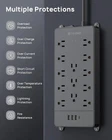 Product Description Surge Protector Power Strip 15 ft Cord - Long Extension Cord, 13 Widely-Spaced Outlets Expansion with 4 USB Ports(1 USB C), 4000J, Flat Plug, Wall Mount, ETL Listed, Office Desk Accessory, Black Power strip surge protector - ETL listed, this massive outlet expansion features 13 AC outlets and 4 usb charging ports(17w total usb output), which provide power and charging for up to 17 devices from a single wall outlet. Max. power: 1875w (125v~15a) 13 widely spaced AC outlets - Extra space in-between(38mm vs. 30mm on other power strips) can provide room for large plug adapters without blocking adjacent outlets. Easily plug in your PC, monitor, printer, TV, android box, echo & more 15ft extension cord flat plug - Made of 14awg pure copper, the 15-foot long power cord is heavy-duty and has better current carrying capacity (15A). The low-profile space-saving 45° angled flat plug doesn’t block the bottom receptacle Wall mountable design - 4 screw-mounting tabs allow you to securely install this surge protector power strip in various applications, including the entertainment center, behind the TV, dorm room, guest room, garage, desktop, under desk/counters, workbenches, etc. Safety assurance - It’s ETL listed, and made of the top-grade ul94 v-0 flame-retardant material. With 4000j surge protection, it safeguards your TV, computers, phones & office equipment from potentially damaging power disturbances, creating peace of mind About Us We are a reputable seller with many years of experience selling on eBay. Our goal is to provide high-quality products and excellent customer service. Shipping Items will be shipped within 1-3 business days when we received payment. (Orders are not processed on weekends & holidays) Tracking information will be sent once item is shipped. Delivery time depends on destination and other factors Item is shipped to ebay address. Leaving correct address can minimize delay. For international shipping and shipping to Guam, Hawaii and Alaska, Please contact us before placing the order. International buyers please note: Import duties, taxes and charges are not included in the item price or shipping charges. These charges are buyer’s responsibility. We will try our best to reduce the risk of the custom duties. Local pick-up is unavailable at the moment. Contact Us We reply any email messages within 1 business / working days(off-duty at weekend). If you do not get a response from us, then please check your junk or spam mailbox. Our Business hours: Mon-Fri 9:00-18:00, UTC/GMT +8 hours. Please contact us either by clicking "contact seller" in the "purchase history" section or simply click "ask a question" at the bottom of this page. If you are unsatisfied with our item or service, please contact us before leaving any feedback. We are committed to resolve all issues in a friendly and satisfactory manner.