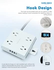 【10-in-1 Versatile Power Strip】Offering a total of 8 sockets, including 4 AC outlets, 3 USB-A ports (5V 2.4A), and 1 USB-C port with 15W fast charging capabilities. With a maximum power capacity of 1250W/10A and surge protection of 1050J, this power strip ensures safe and stable charging for multiple devices. The 5FT extension cord with high-conductivity yellow brass construction provides reliable power transmission and resistance to bending. ETL certified. 【Multi-Functional Small Hook】The sleek power strip is equipped with a small hook on the side, which can be pulled out when needed and retracted according to your own wishes. The hook can be pulled out to act as a phone or PAD stand, making it more convenient for watching videos or taking photos. It can also be hung on a nail-free wall, saving space and adding functionality and convenience. Suitable for various scenarios: home Equipment, office Accessories, workshop essentials, gaming room. 【11 Safety Protections】The power strip surge protector offers comprehensive safety protection with 11 safety protections. These include a fireproof casing, 1050J surge protection, overload protection, grounding protection, short circuit protection, overcurrent protection, overvoltage protection, overheat protection, high-frequency anti-interference protection, aging resistance and moisture protection, as well as anti-electric shock protection. This ensures that your devices are safeguarded against various potential risks, providing peace of mind during charging and usage. 【Comprehensive & Spaced Outlets】A switch on the side that automatically shuts off the circuit board in case of circuitissues, ensuring circuit safety (10A overload protection button). The wider spacing between the outlets accommodates plugs of different shapes and sizes. 3USB−A&1USB−C charger with a 5Vdc 3.4Amax output, ideal for travel as it can charge three iPhones simultaneously within two hours, and is compatible with various devices like phones, headphones, Pads, small fans, and toothbrushes. It measures L3.9” x W4.13” x H1.16”. 【Mountable and Flat Plug】The electric plug multiplier, designed with one holes on the back for easy installation. Featuring a flat plug with a slim profile, this power strip is perfect for tight spaces. The plug is also inclined at a 45-degree angle for convenient access and ease of use. The back features anti-slip pads for effective skid resistance. Excellent craftsmanship, durable with over 5000 plug and unplug cycles. UL94 V-0 flame-retardant material, electrical resistance withstands up to 1382 degrees Fahrenheit.