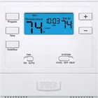 Multi stage 2 heat 2 cool 5/1/1 programmable Battery powered or hardwired 4 sq. inch display with blue backlighting PRO1 specializes in the design and manufacturing of professional grade products that improve the comfort of a home and simplify the installation. All of our products are designed to accommodate the performance and reliability demands of professional heating and cooling technicians. Heating and cooling accounts for almost half of our annual home energy consumption. You can personally reduce nearly 2,000 pounds of carbon emissions annually with a few simple adjustments. The American Council for an Energy Efficient Economy has more tips for saving energy on heating and cooling. Separate heating and cooling swing (cycle rate) adjustments including 2nd stage adjustments. 5 minute compressor delay protection (selectable on or off). Filter change indicator (selectable on or off). 5 minute compressor delay protection (selectable on or off).