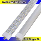 FAST DELIVERY - Ship from New Jersey or Los Angeles Warehouse via FedEx , 3-7 Days Delivered Your Door . SCIENTIFIC DESIGN - 8Ft LED Shop Lights Fixture is Made of 6500K Cold White SMD2835 LED Chip ,Plastic Clear Cover , Aluminum Bracket Housing ,and AC85-277V Constant Current Driver . It can work in -68F to 120F Temperature Conditions EASY INSTALLATION - The Integrated Tube Fixture Can be Install on Wall or Ceiling ,Easily Replace Traditional Fluorescent Tube Bulb . Plug and Play , Free Accessories (Power Cords, Connector , Extension Cords , Clip and Screw ) Come with Tube Lights Together WIDE APPLICATION - Linkable 8Ft Bulbs Widely Used in Garage Ceiling , Barbershop , Schools, Hospitals Basement , Factory Warehouses , Supermarkets Cooler Door , Offices, Shops,Hotels, etc T8 8FT LED Tube Light Bulbs 144W FA8 Single Pin 144W 8FT LED Shop Lights 25P 【No RF & FM Interference】LED Driver have passed Electromagnetic Magnetic Compatibility EMC tests,No cause EMI ,No longer subject to any RF & FM jamming. Never interfering with the signal of your garage roller shutter door,No make noise when you listen radio 【Easy to Install】Just simply bypass the ballast and connection AC85-277V AC power . Not compatible with single-ended powered sockets 【Wide Application】 - 8Ft 144W V Shaped FA8 HO LED Bulb fitted to replace traditional F96T12 T8 T10 T12 fluorescent bulbs. Widely used in Garage,supermarkets, offices , convenience stores , gas stations , warehouse,parking lot,shops, hotels,Refrigerator,coolers or freezers illumination,etc 【High Output】8Ft 144W 18000LM FA8 【Rotate Cap & Swivel End】 Easy Adjust rotated Lighting Direction within 180 degree after Installation