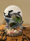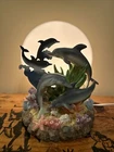 TABLE LAMP DOLPHINS IN SURF WAVES VINTAGE 8in TALL OCEANIC SCULPTURE Very rare! A great addition to any children’s room or adult collector!