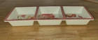 GET READY FOR SUMMER ENTERTAINING OR A DAY AT THE BEACH! THRESHOLD MELAMINE FLORAL SCALLOPED & CORAL PATTERN 6 SALAD PLATES, 1 SMALL CORAL COLORED BOWL, 1 LARGE FLORAL SCALLOPED & CORAL PATTERN BOWL, 1 FLORAL SCALLOPED & CORAL PATTERN 3 SPACE APPETIZER/DIPPING/CONDIMENT SET. YOU WILL GET IN THE SET: A Total of a 9 Piece Set 3 floral & scalloped salad plates measuring 8.5" in diameter. 3 coral salad plates measuring 8.5" in diameter. 1 small coral-colored bowl measuring 6.5" in diameter. 1 large serving bowl for salad or whatever food you choose measuring 12" in diameter and approximately 3.5" deep. 1 Appetizer/Dipping/Condiment which has 3 separate compartments measuring 15". Please ask any questions or if you would like more photos.