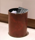 This antique attractive waste paper basket, will add a beautiful decorative accent touch for your home or office. a solidly crafted wood bin, covered in leather design, you will love this. Approx. Dimension: 10" X 10" X 13"High Great for use in bathroom, bedroom, office, and living room Material: Antique crafted design faux leather wrapped on fiber Wood Color: Antique Cherry