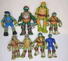 Get ready to add a unique and exciting piece to your collection with this set of 8 used loose figures with wear as shown in good condition Teenage Mutant Ninja Turtles Mutations and Figures! This set includes Leonardo, Raphael, Donatello, and Michelangelo, each with one extra hand piece and made of durable ABS Plastic. The detailed characters come straight from Nickelodeon's Animation Studio and are a licensed reproduction of the popular franchise. In addition to being a perfect addition to any TMNT fan's collection, these action figures are perfect for imaginative play or display. The colorful multicolor design is eye-catching and sure to be a conversation starter. Don't miss your chance to own a piece of the Teenage Mutant Ninja Turtles legacy!One with batteries not tested.And broken strap on one.